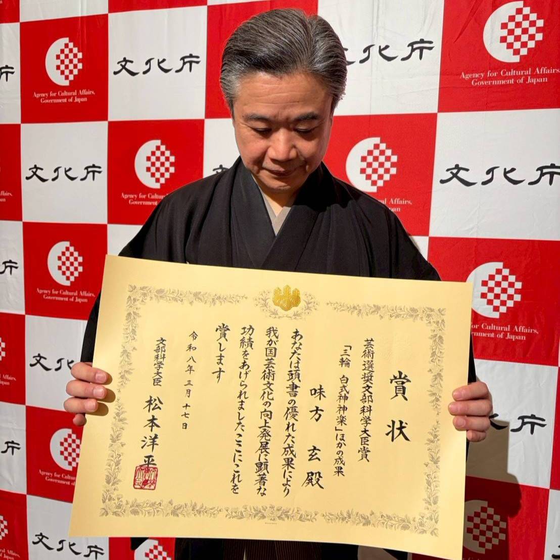 令和7年度(第76回)芸術選奨の贈呈式にて「文部科学大臣賞(演劇部門)」を賜りました。